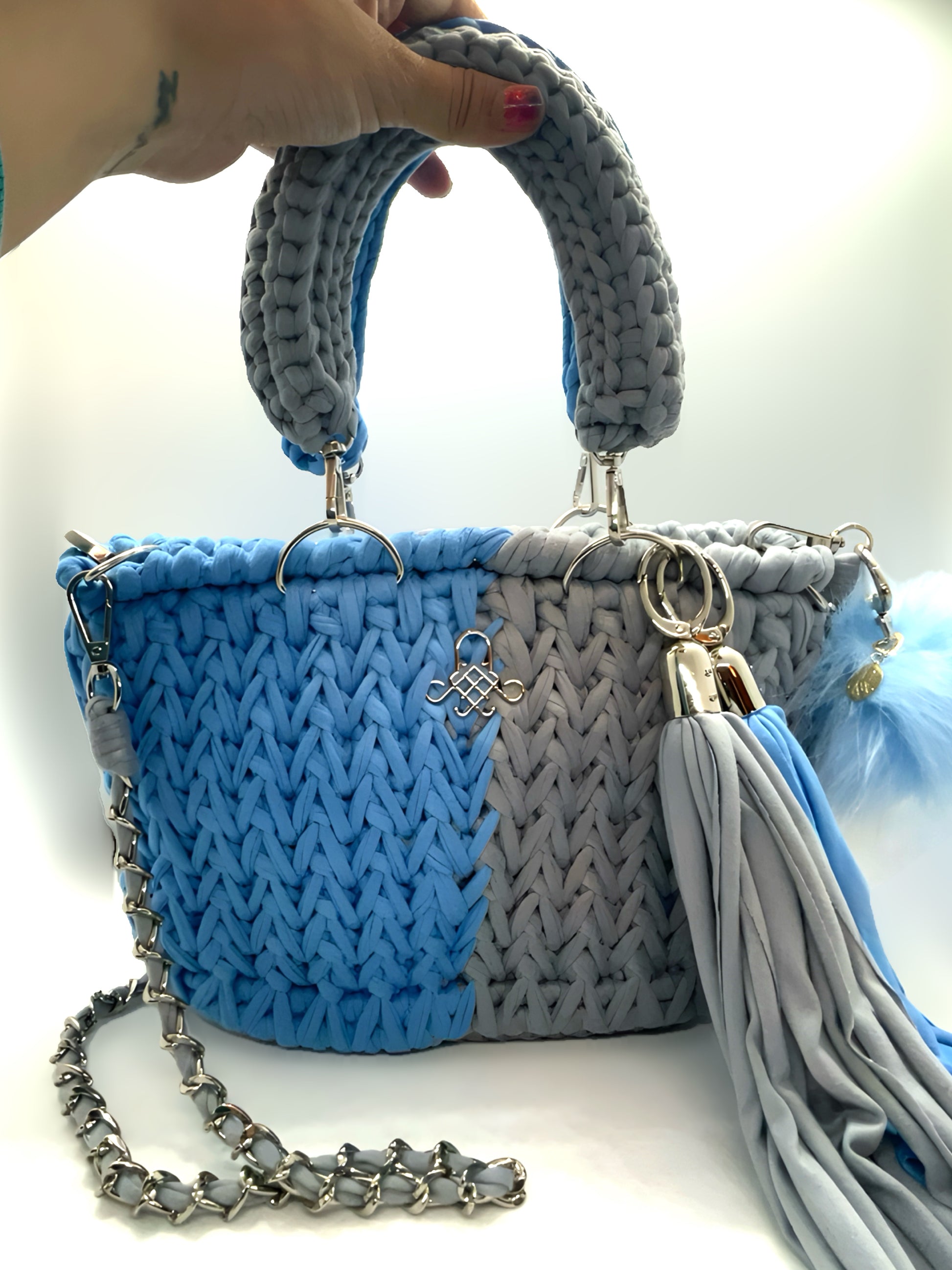 La bolsa “Anaid” es una obra de arte tejida a mano con trapillo, pensada para mujeres que aprecian lo auténtico, lo exclusivo y lo hecho con pasión. Su diseño bicolor no solo resalta a la vista, sino que cuenta una historia de más de 8 horas de trabajo artesanal, donde cada punto fue tejido con intención y amor.