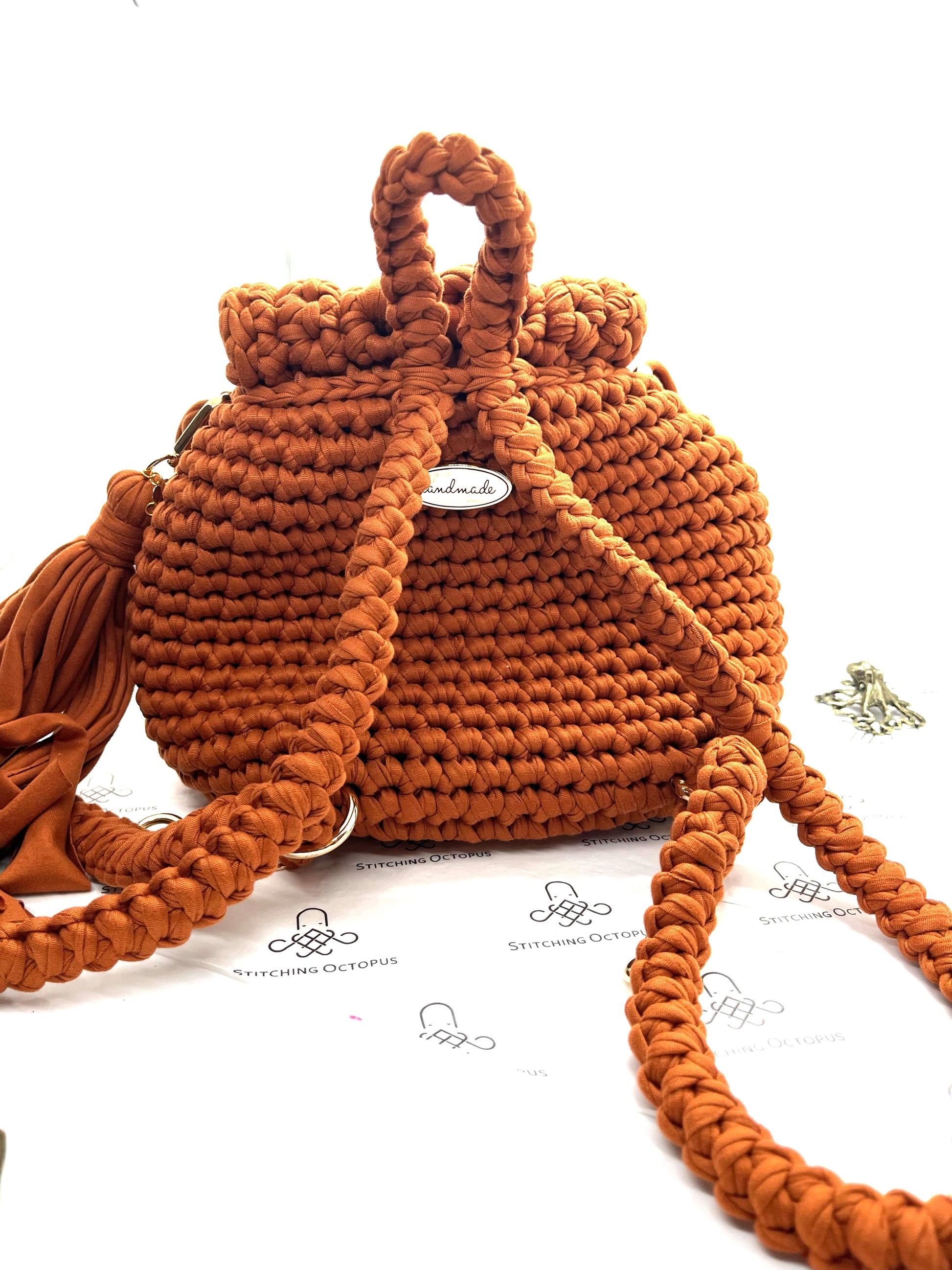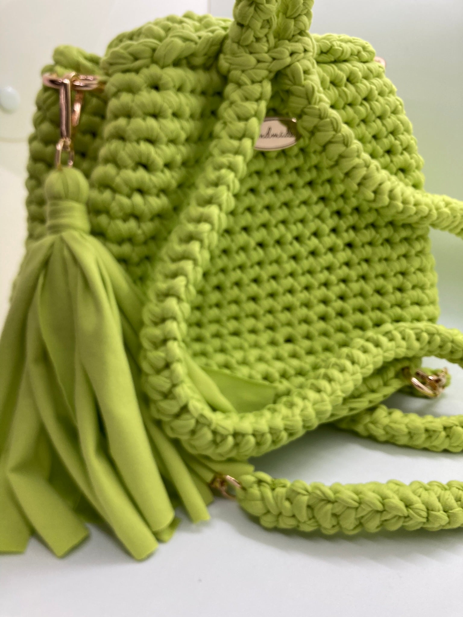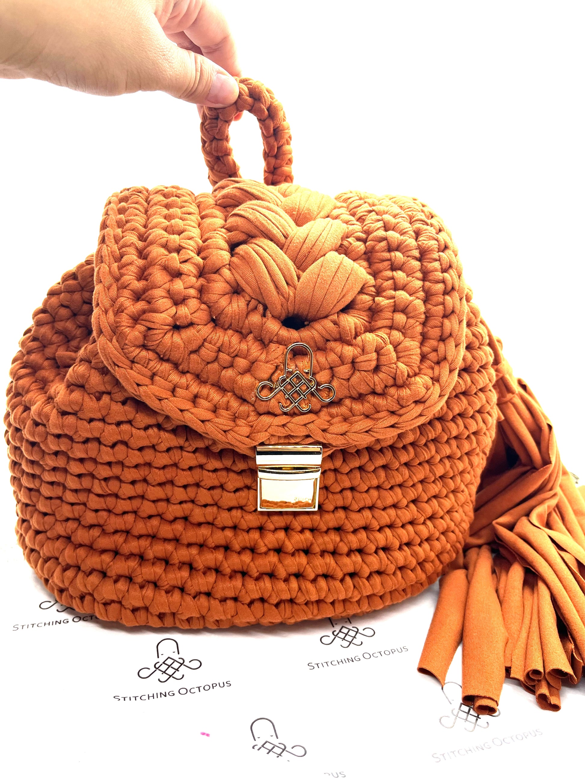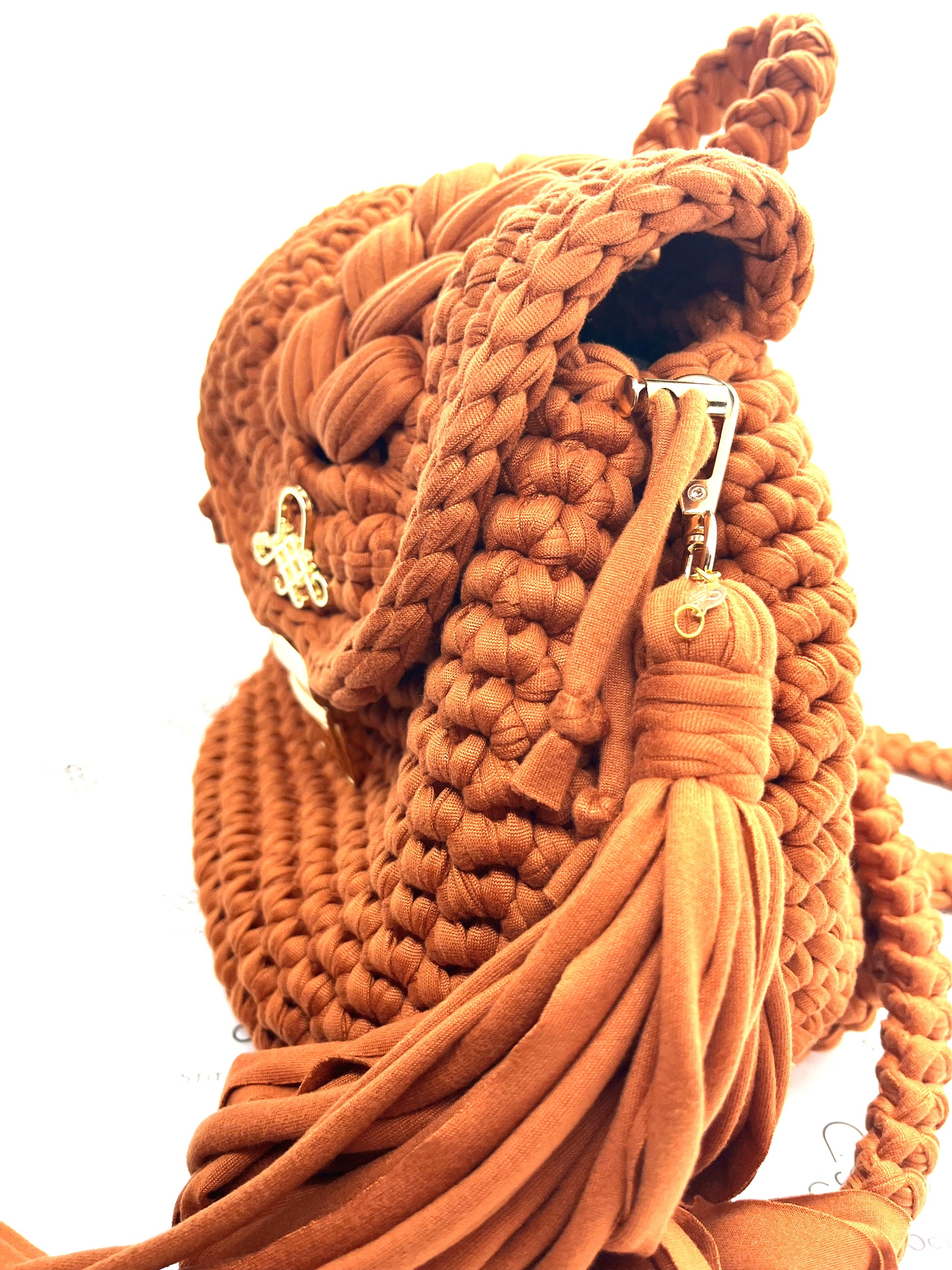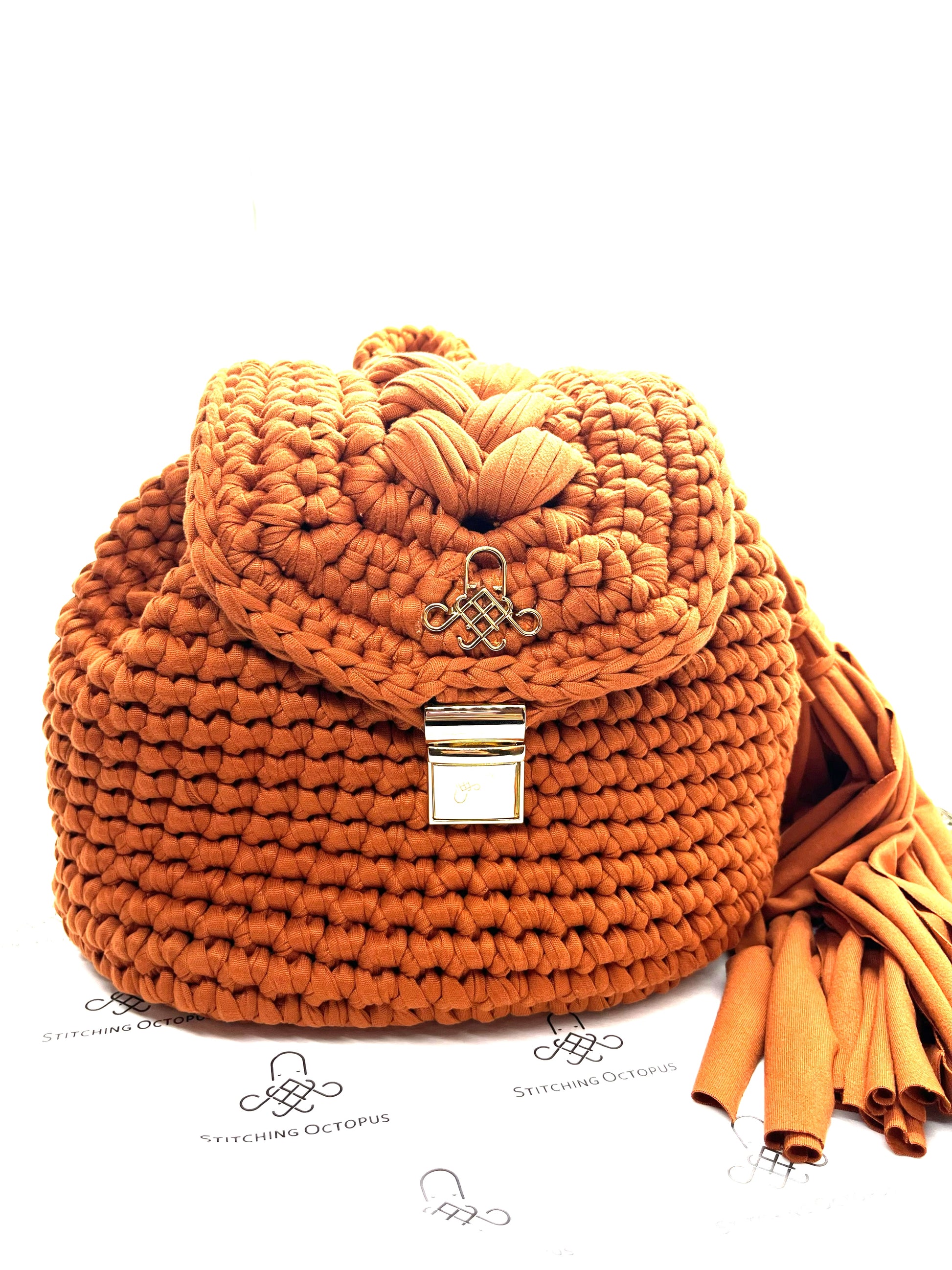 Inspirada en un diseño clásico de bolsas a crochet, la BKPK Elena es una mochila perfecta para aquellos que no les encanta usar crossbody o bolsas de mano, pero quieren traer sus básicos con mucho estilo y originalidad. Hecha con trapillo de tela y herrajes de zinc aluminio patitas para que te sientas libre de ponerla en la superficie que desees sin que se maltrate tanto.
