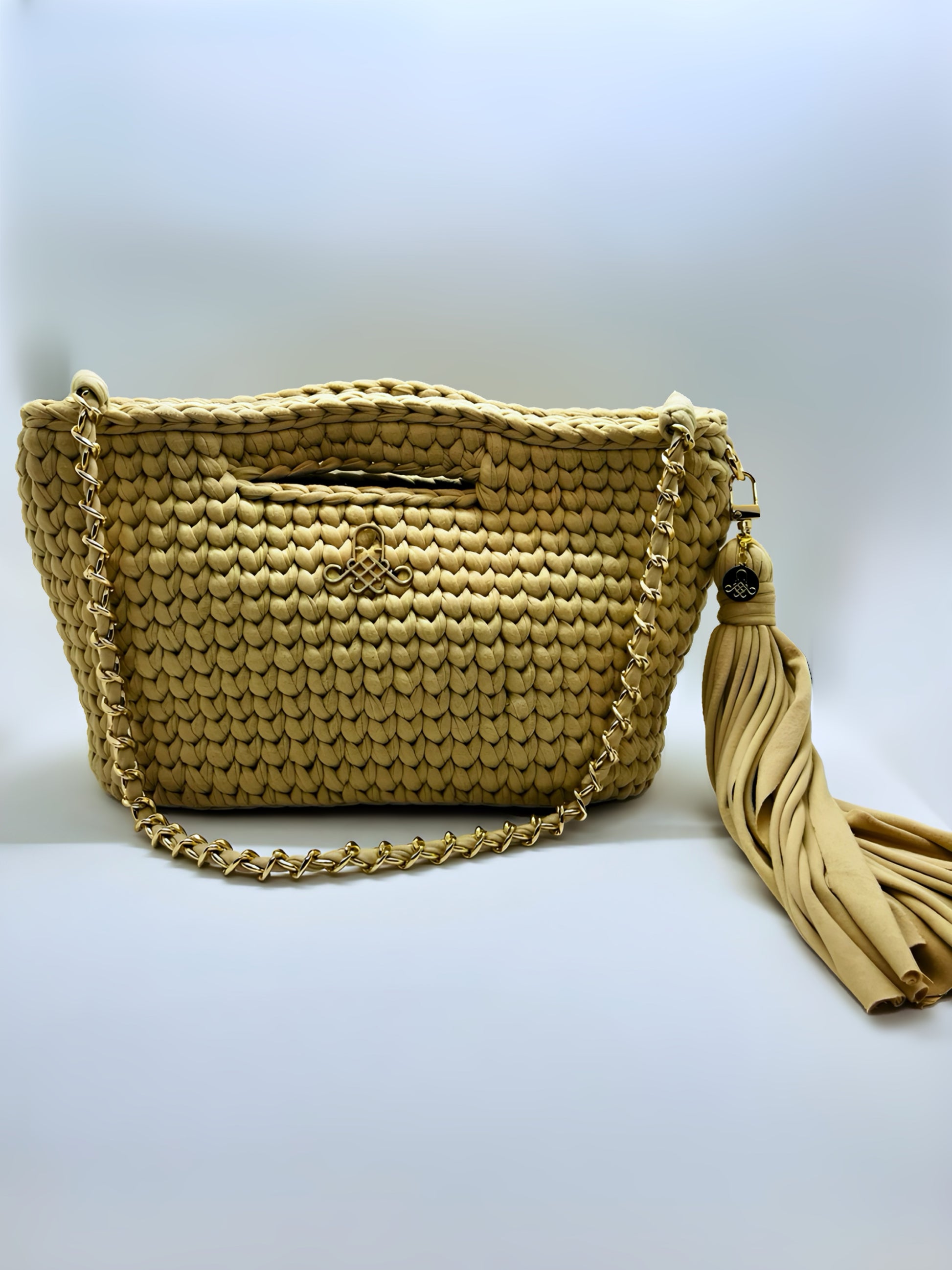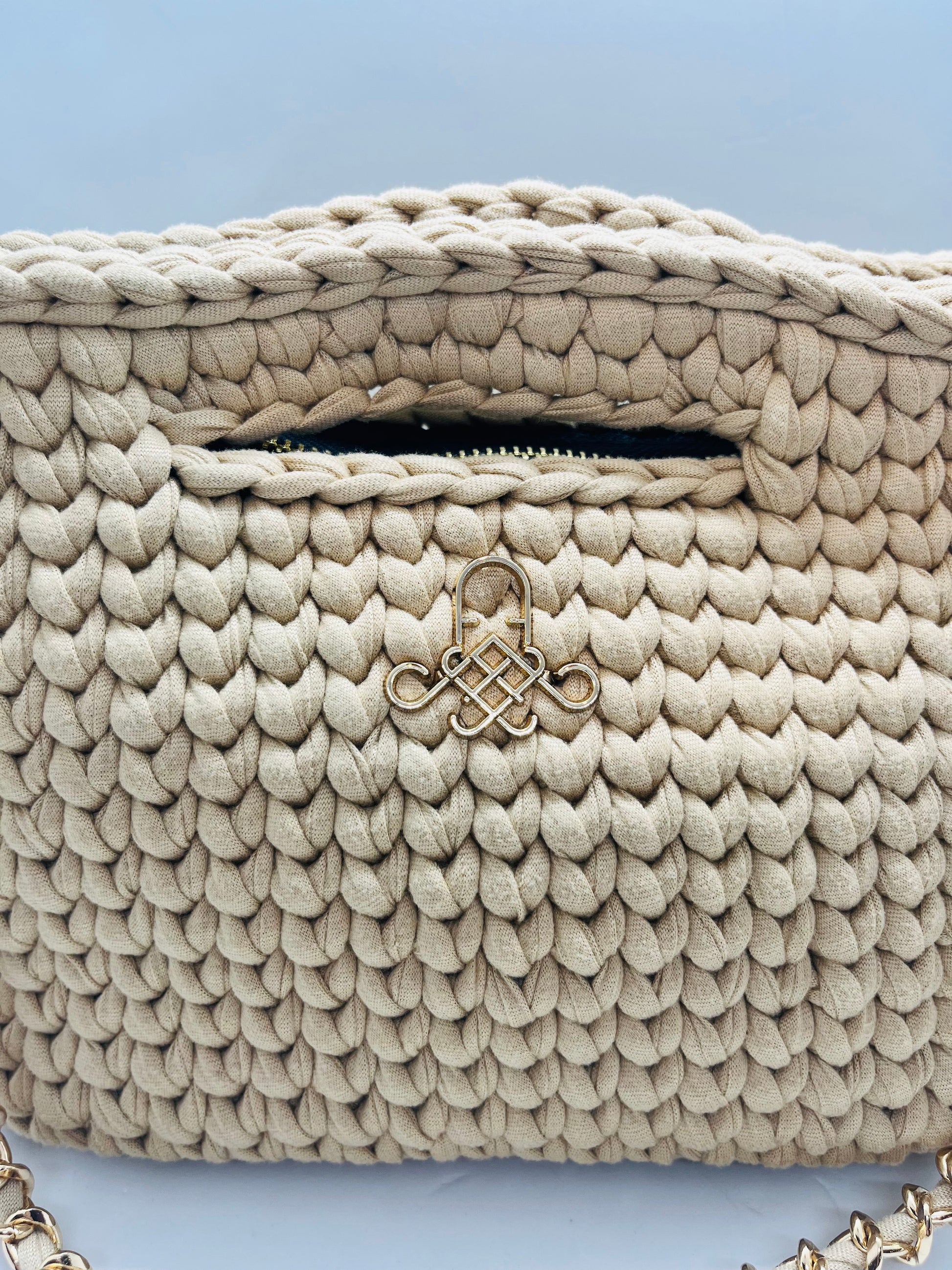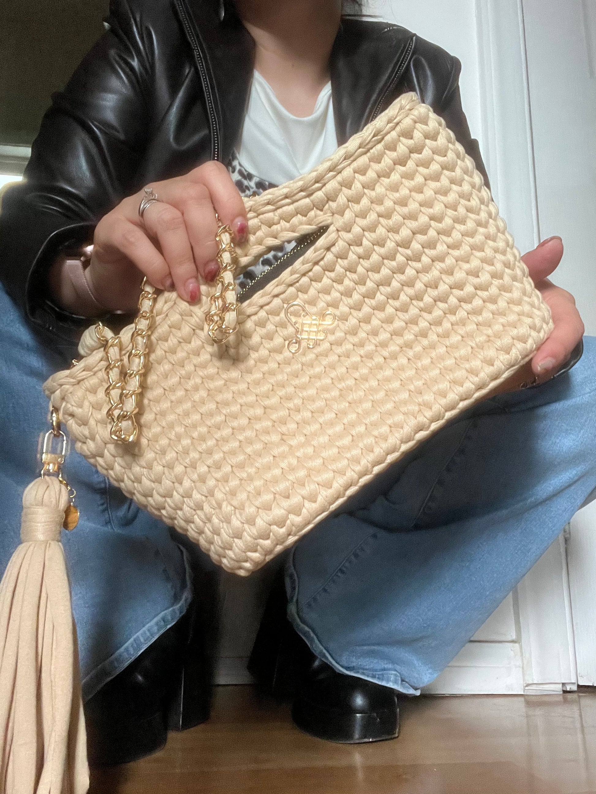 Un toque de lujo artesanal en cada detalle. Esta bolsa tejida a crochet con trapillo es la combinación perfecta entre elegancia y versatilidad. Su diseño estructurado y el tejido meticuloso la convierten en un accesorio único, ideal para realzar cualquier look.