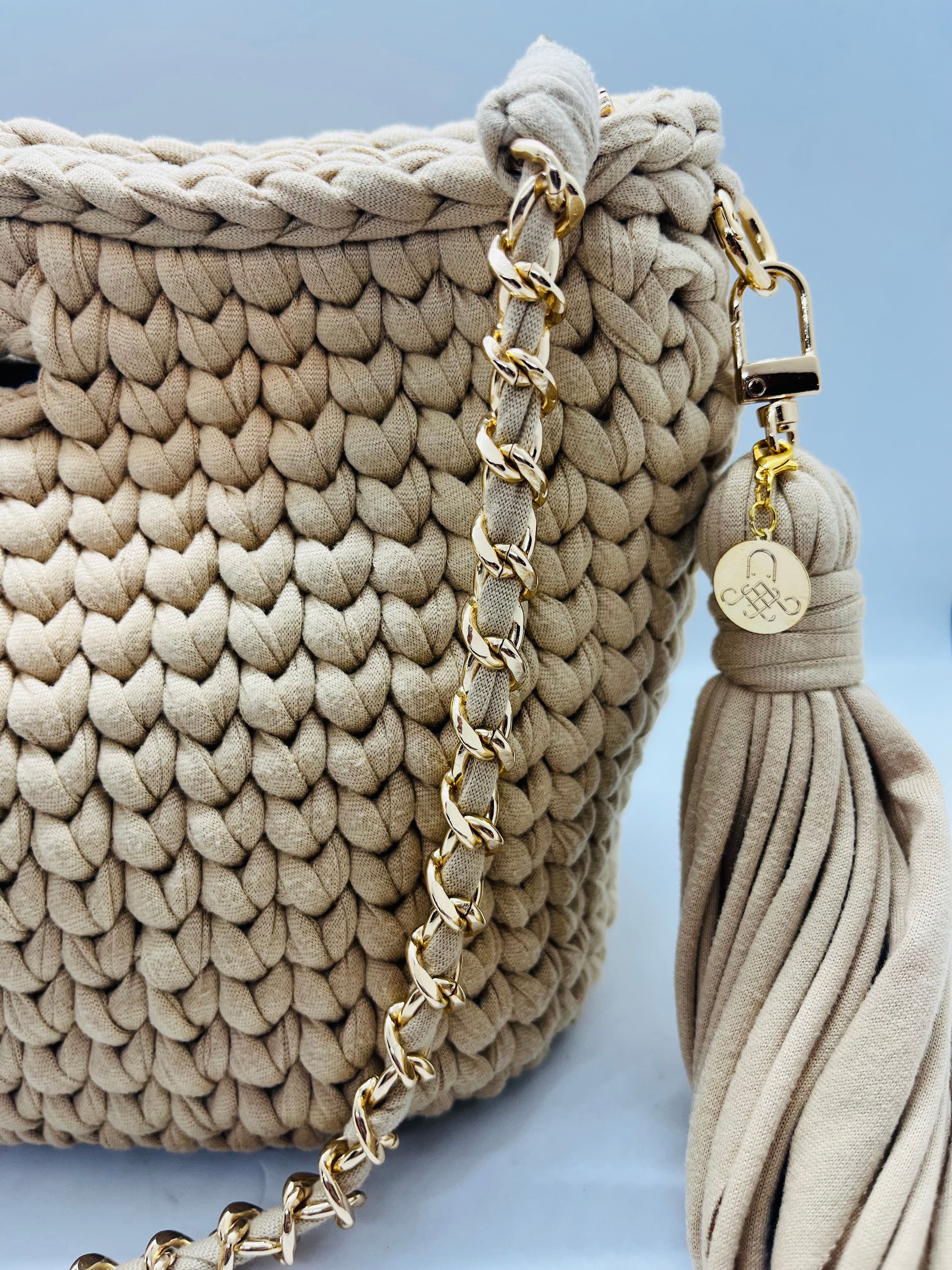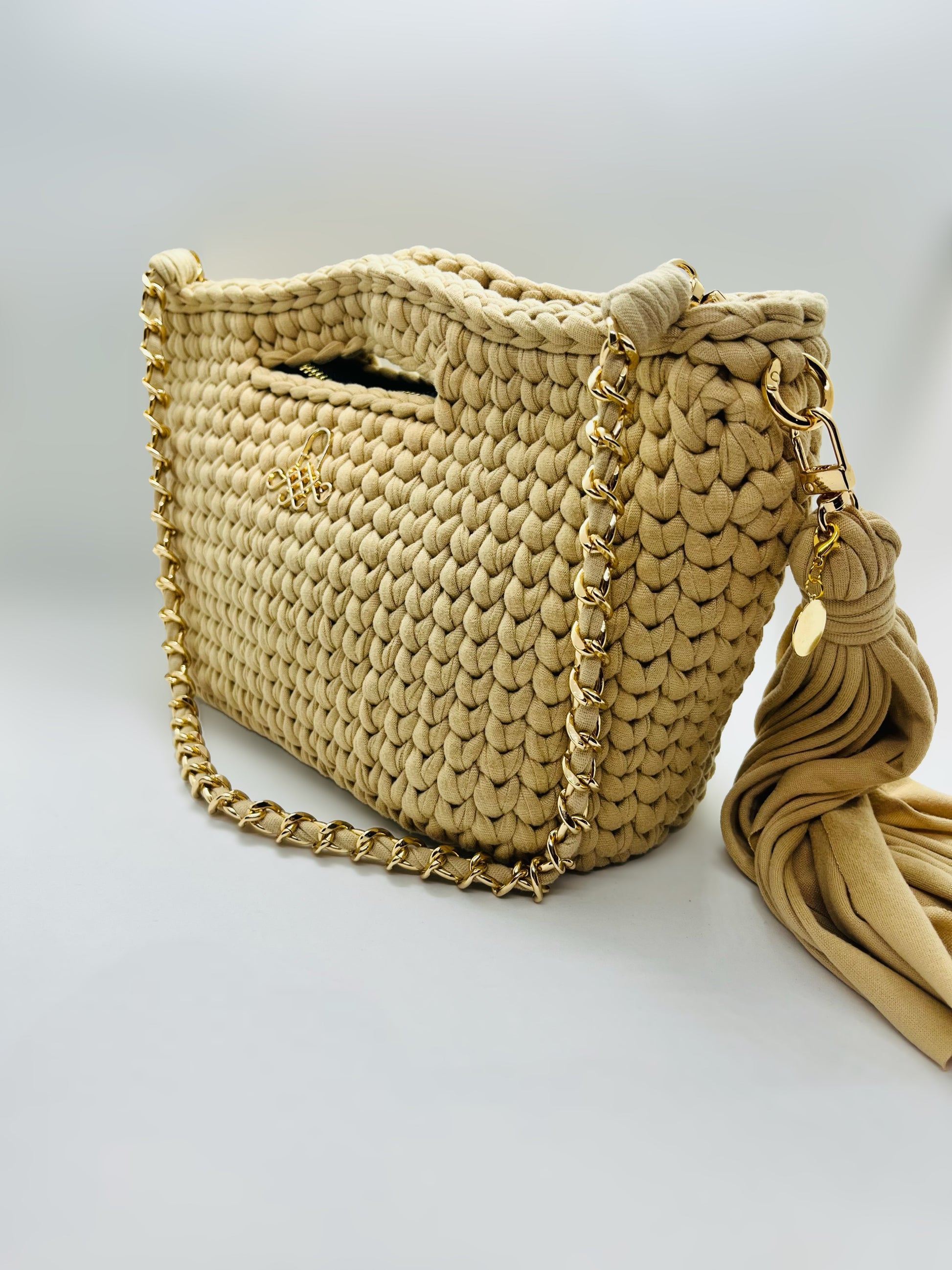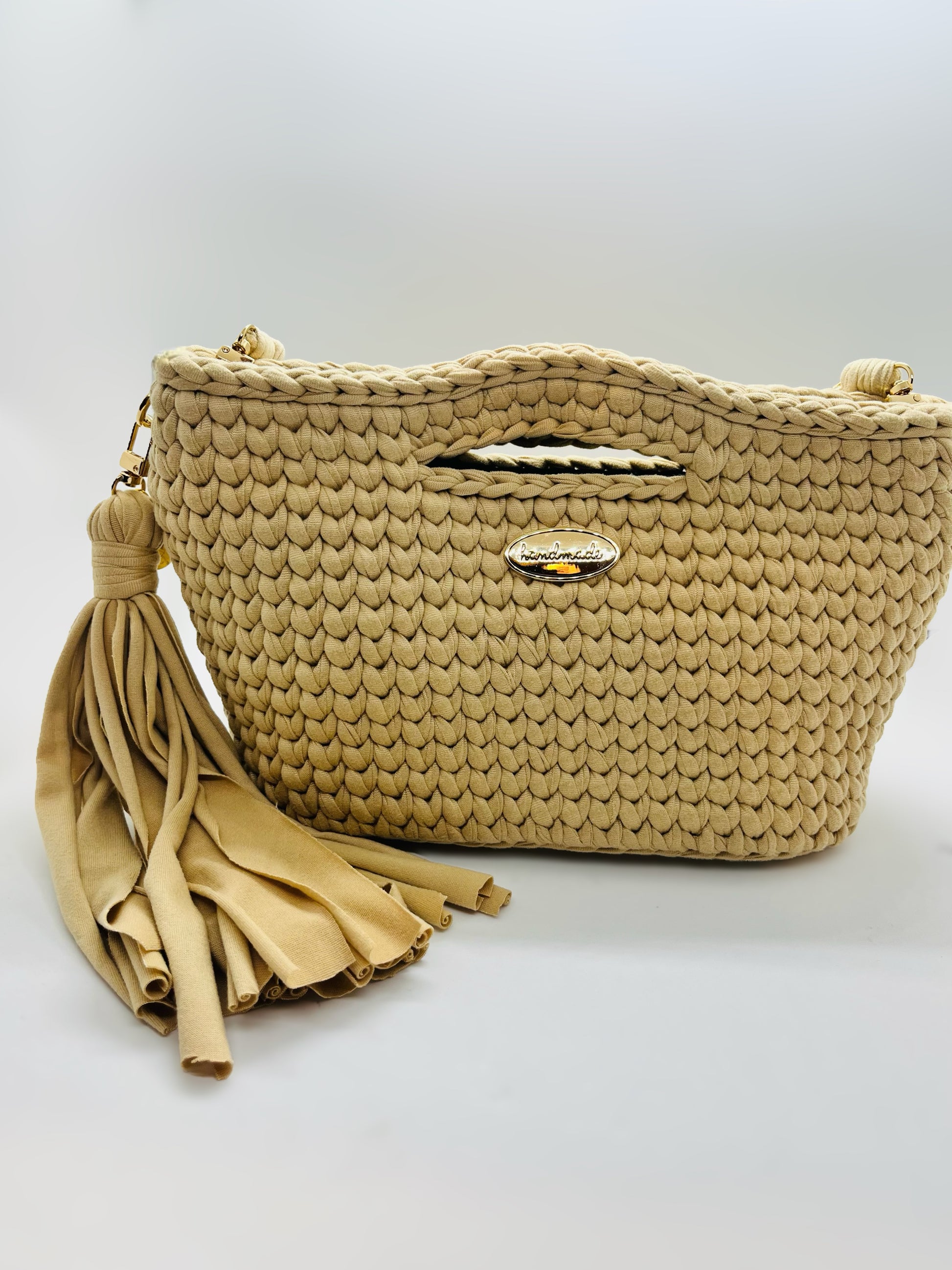 Un toque de lujo artesanal en cada detalle. Esta bolsa tejida a crochet con trapillo es la combinación perfecta entre elegancia y versatilidad. Su diseño estructurado y el tejido meticuloso la convierten en un accesorio único, ideal para realzar cualquier look.