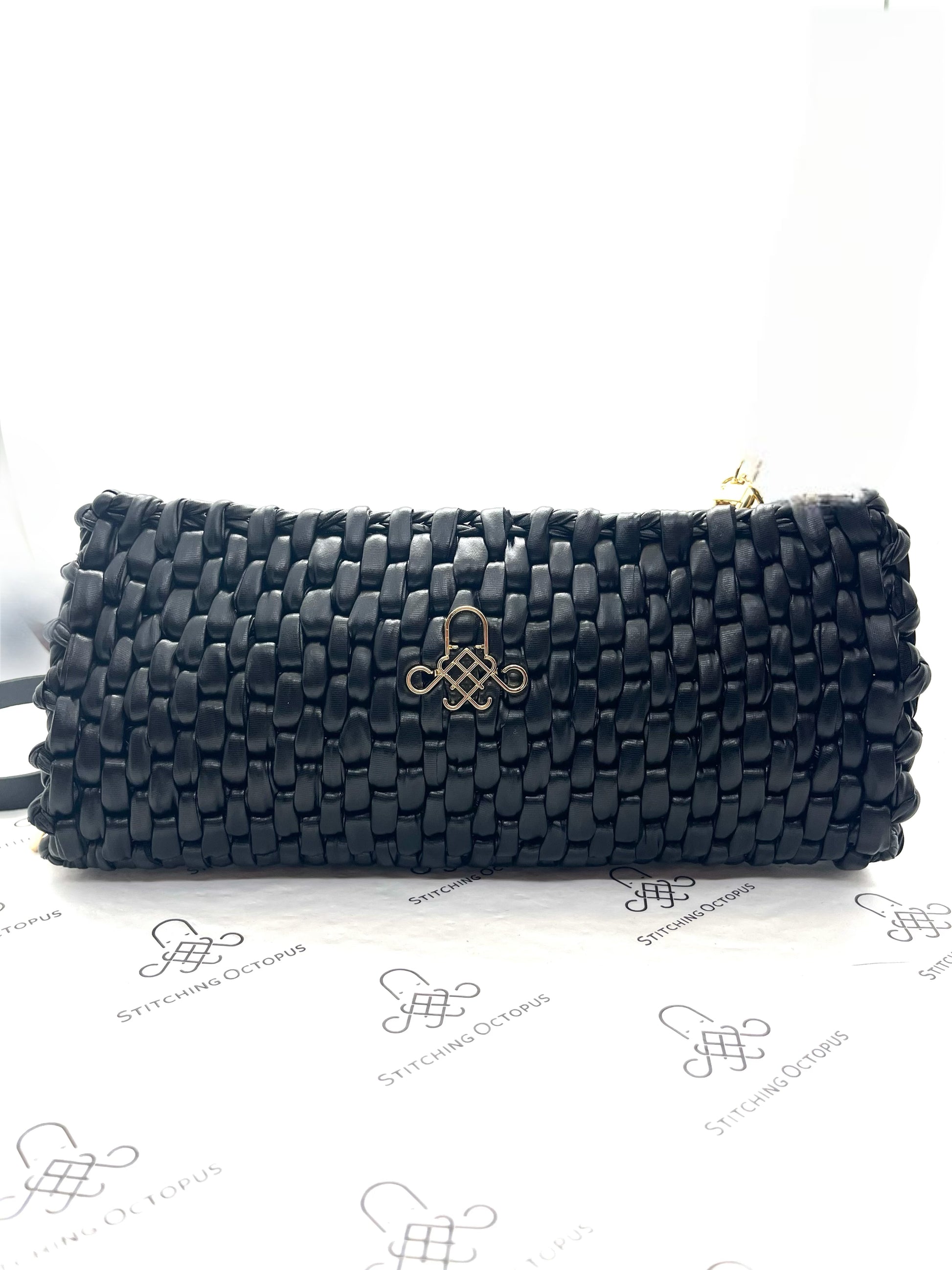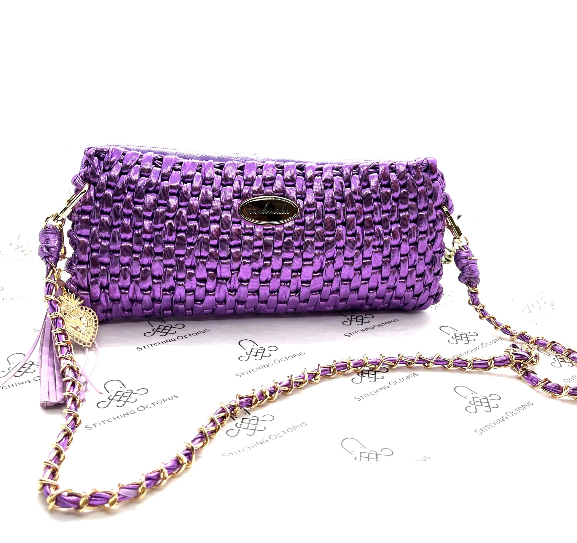 Forrada con toques de piel sintética y algodón. Cuenta con un tamaño de 26cm de largo y 12 cm de alto (todos los tamaños pueden variar un poco porque son tejidas a mano) y por supuesto que te incluye su cadena desmontable.