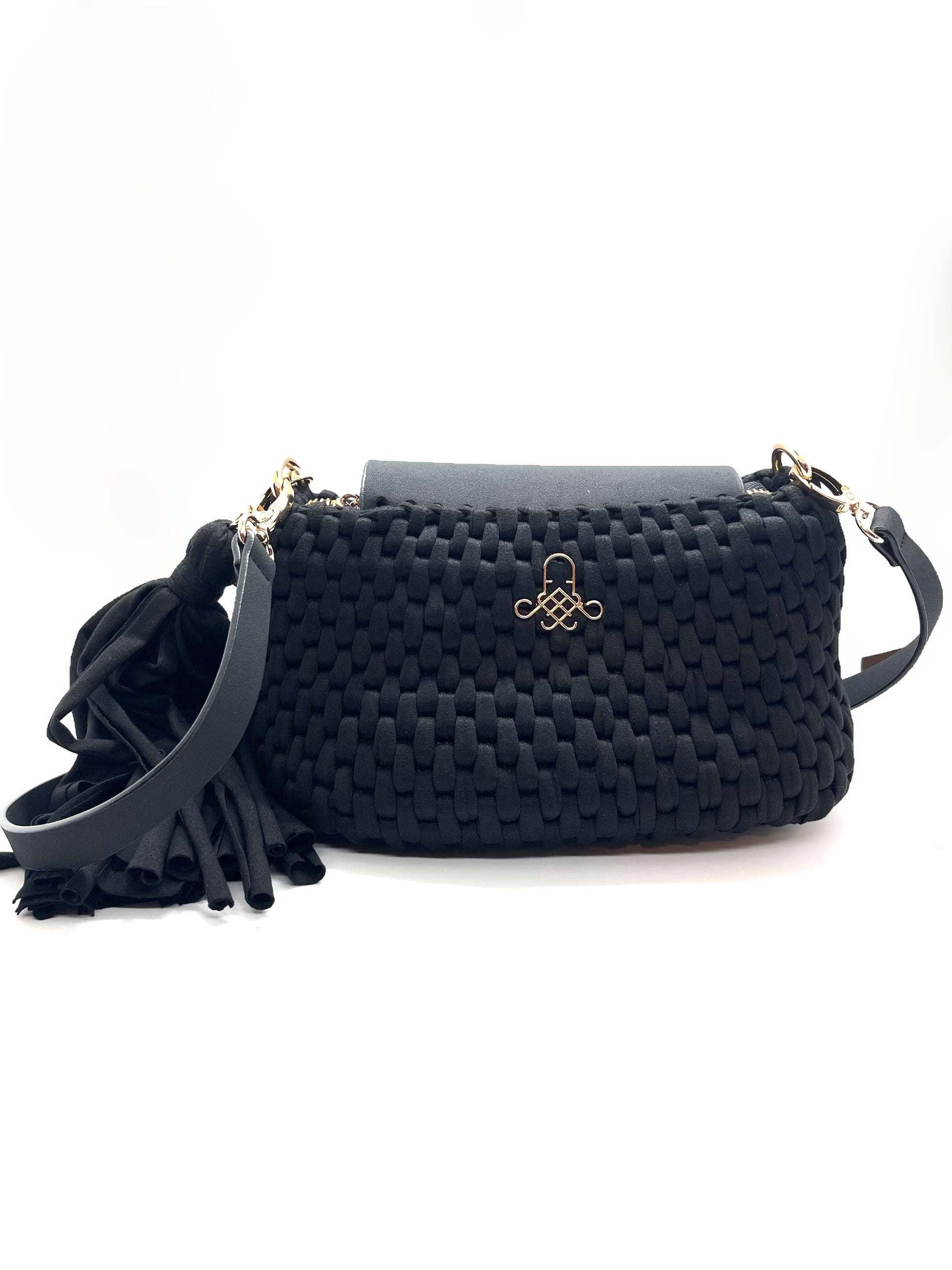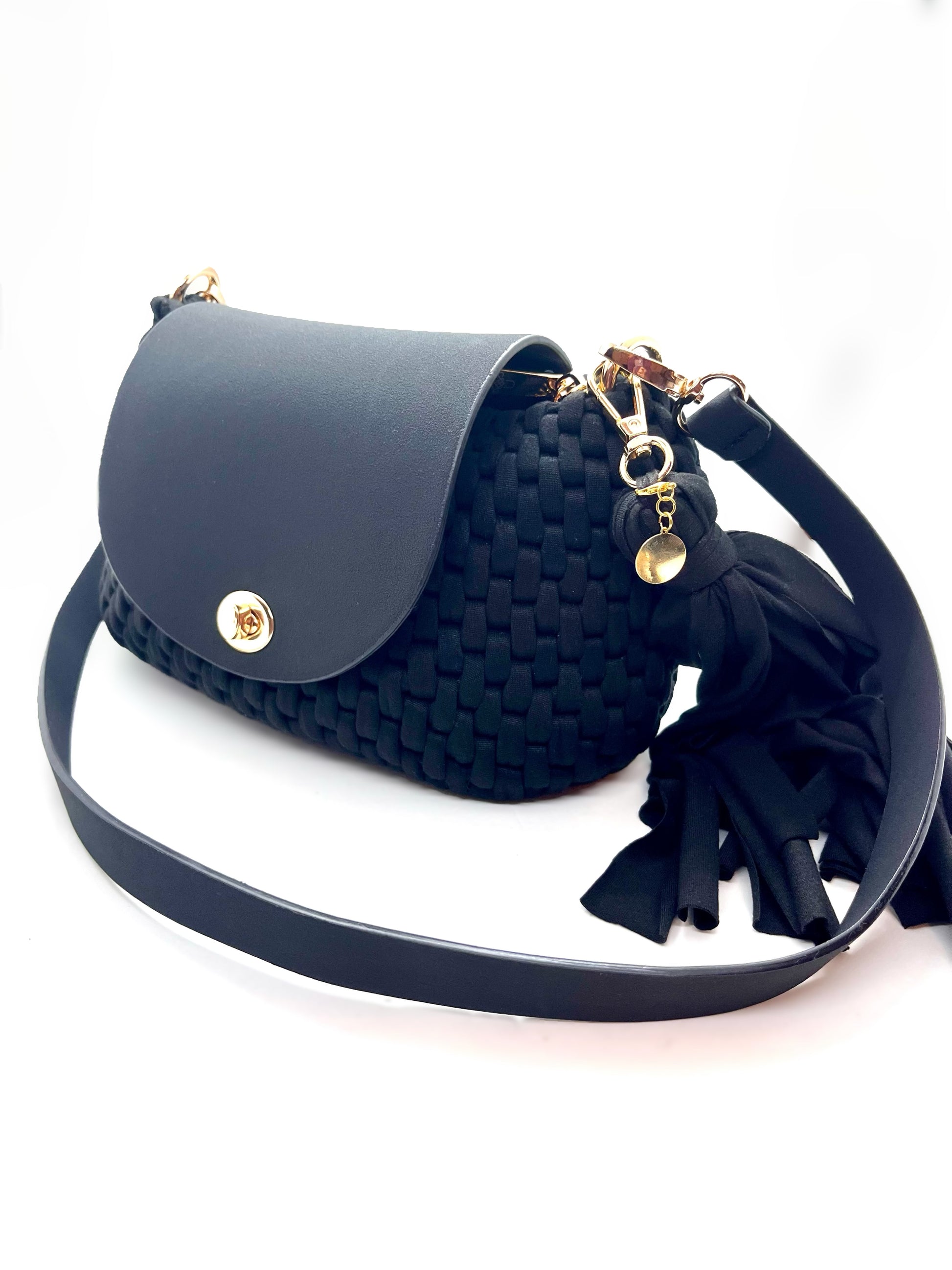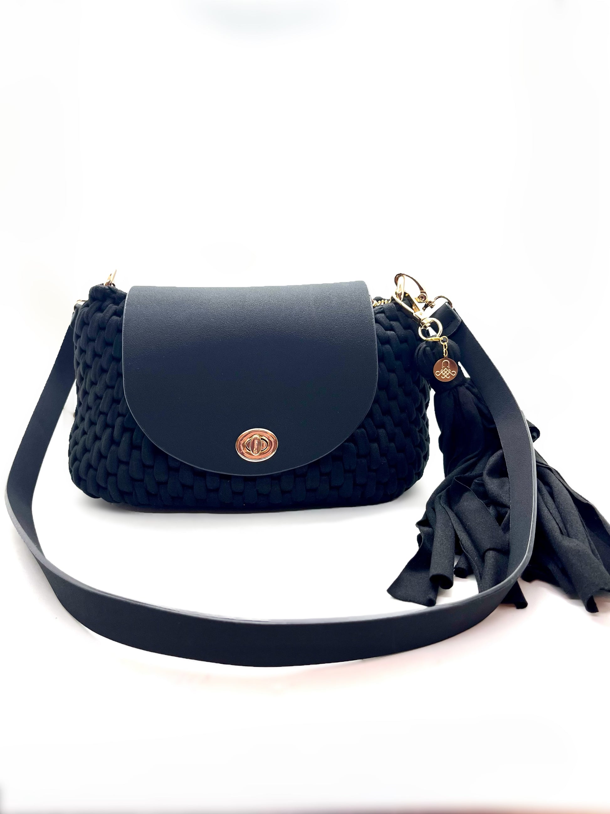 Nuestra BASIC BCH 2 llegó para demostrar que lo esencial no tiene que ser aburrido. Hecha a mano en punto ratán con trapillo, esta bolsa tiene la actitud que necesitas para elevar cualquier outfit, de brunch con amigas a una noche casual con drinks. El contraste de su tapa, base y correa en PU leather le da ese vibe sofisticado y moderno, mientras que su forro de algodón cuida de tus esenciales con estilo. Y como los detalles sí importan: patitas metálicas, cierre grabado a láser y una borla con dije bañado en chapa de oro que le da ese toque coquette que amamos.