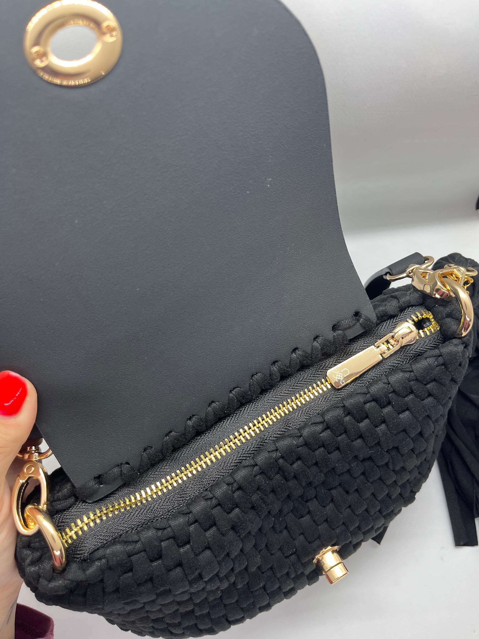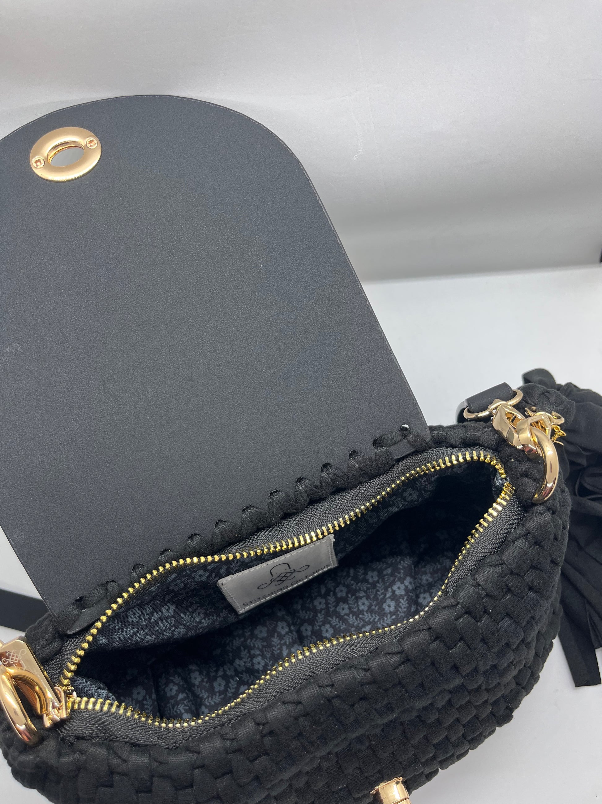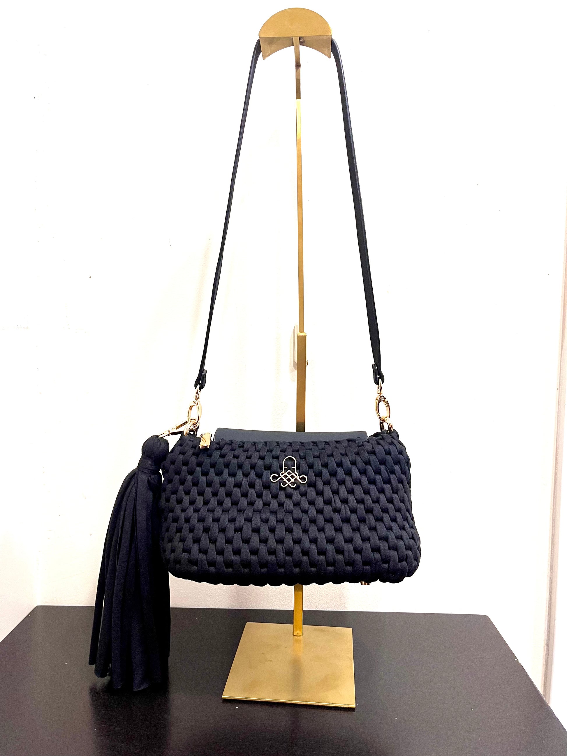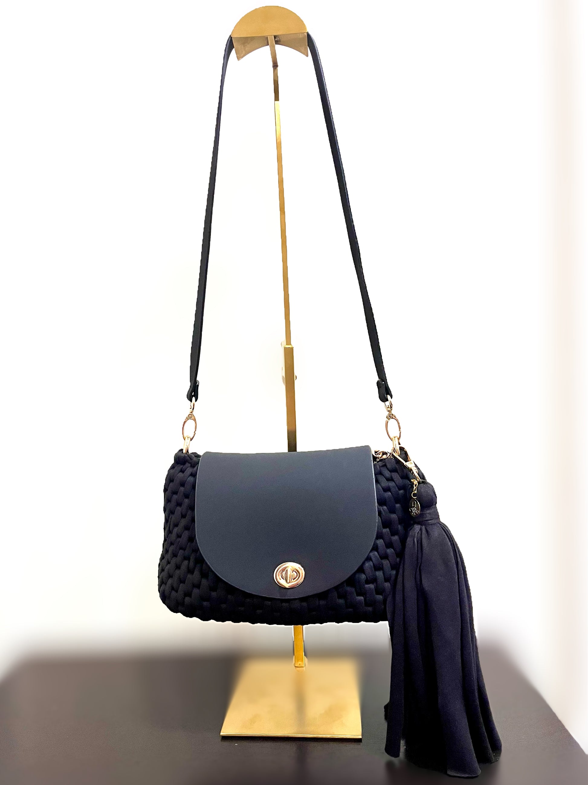 Nuestra BASIC BCH 2 llegó para demostrar que lo esencial no tiene que ser aburrido. Hecha a mano en punto ratán con trapillo, esta bolsa tiene la actitud que necesitas para elevar cualquier outfit, de brunch con amigas a una noche casual con drinks. El contraste de su tapa, base y correa en PU leather le da ese vibe sofisticado y moderno, mientras que su forro de algodón cuida de tus esenciales con estilo. Y como los detalles sí importan: patitas metálicas, cierre grabado a láser y una borla con dije bañado en chapa de oro que le da ese toque coquette que amamos.